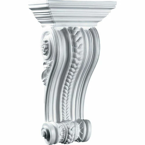 These corbels are truly unique in design and function. Primarily used in decorative applications urethane corbels can make a dramatic difference in kitchens, bathrooms, entryways, fireplace surrounds, and more. This material is also perfect for exterior applications. It will not rot or crack, and is impervious to insect manifestations. It comes to you factory primed and ready for your paint, faux finish, gel stain, marbleizing and more. With these corbels, you are only limited by your imagination.
