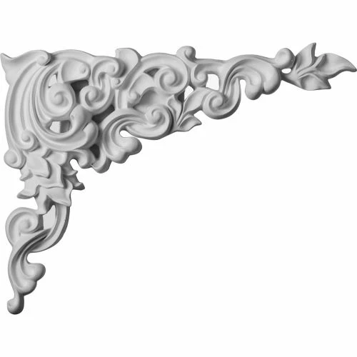 Our appliques and onlays are the perfect accent pieces to cabinetry, furniture, fireplace mantels, ceilings, and more. Each pattern is carefully crafted after traditional and historical designs. Each polyurethane piece is easily installed, just like wood pieces, with simple glues and finish nails. Another benefit of polyurethane is it will not rot or crack, and is impervious to insect manifestations. It comes to you factory primed and ready for your paint, faux finish, gel stain, marbleizing and more.